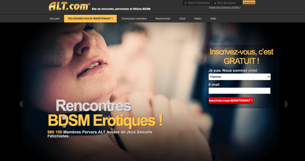 Ce site web, avec une page d’accueil sombre mais élégante, a attiré mon attention et j’ai décidé de le tester. Voici donc mon expérience et mon avis sur le site de rencontre BDSM Alt.com…